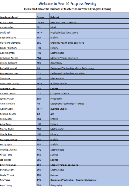 Dear Families attending Year 10 Progress evening,