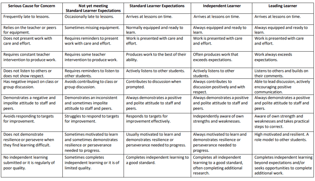 - Attitude to learning – how your child is approaching their learning in terms of effort, organisation etc