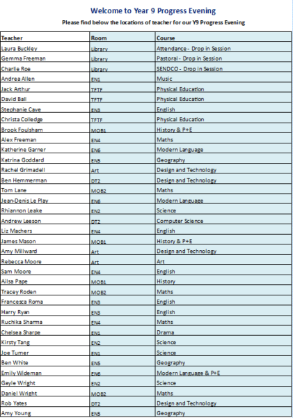 Unfortunately, Mrs Cave and Miss Leake are unable to attend the evening therefore appointments for them have been cancelled. If you had an appointment booked with them and have any concerns regarding your child please email them directly.